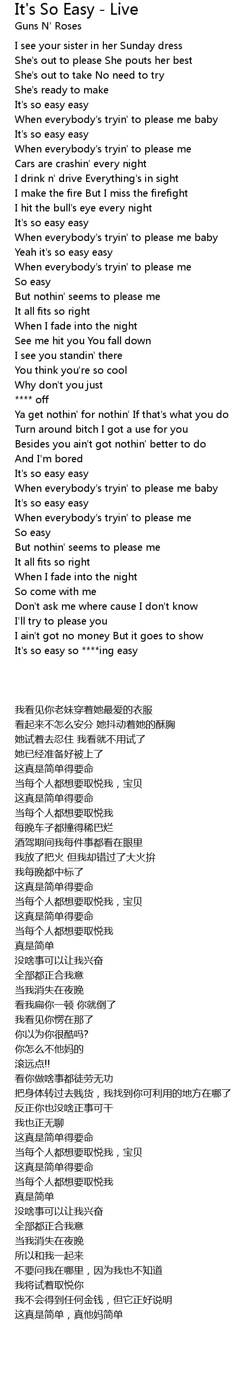 Yeah it's so easy easy |