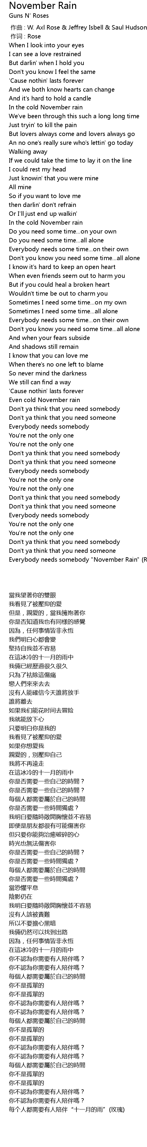 | [08:23.200] | Everybody needs somebody " November Rain" Rose |