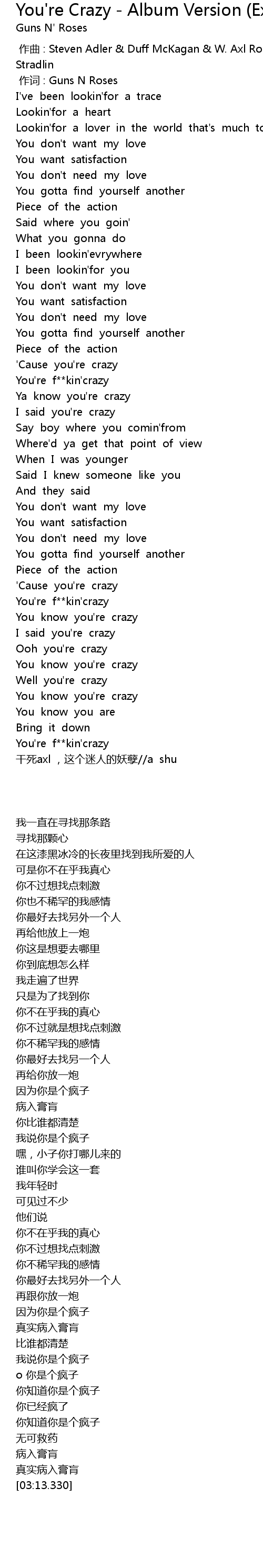 | [03:13.330] | gan si axl , zhe ge mi ren de yao nie a shu |
