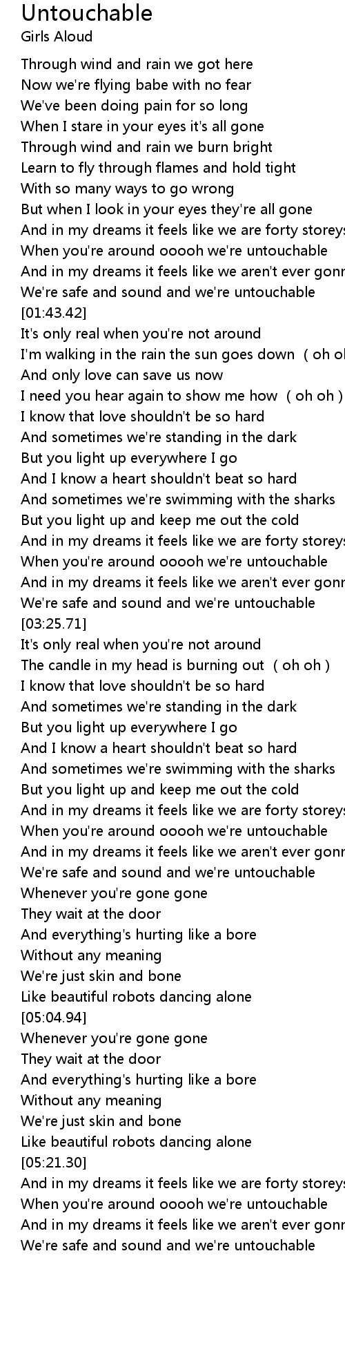 | [03:03.36] | When you're around ooooh we're untouchable |