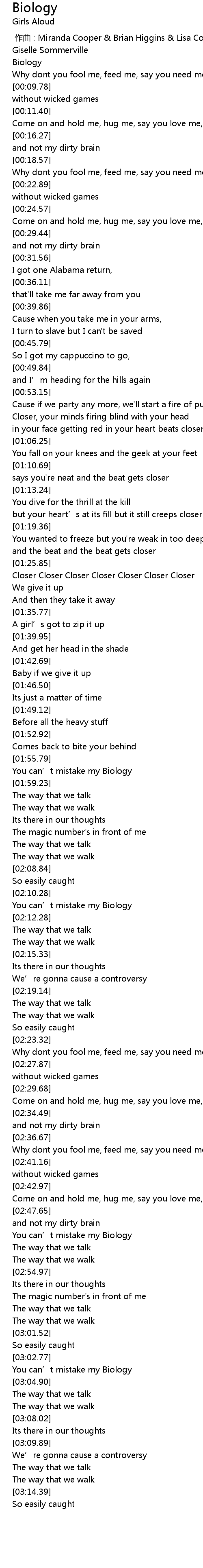 | [02:10.78] | You can’t mistake my Biology |