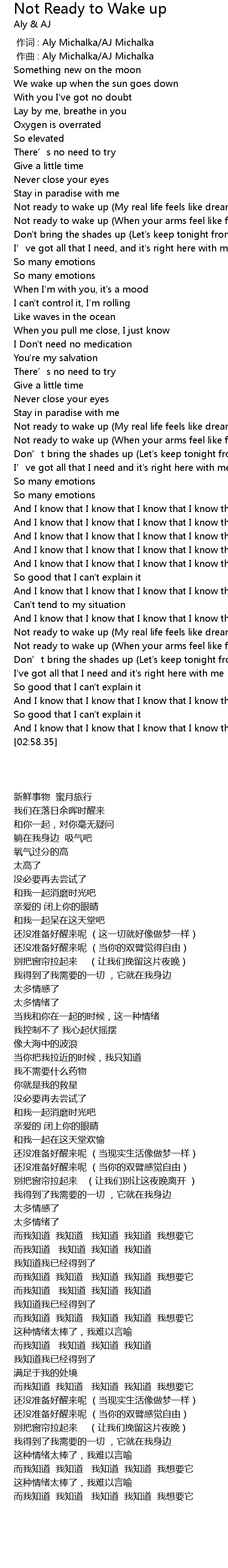 | [02:22.52] | Not ready to wake up (My real life feels like dreaming) |