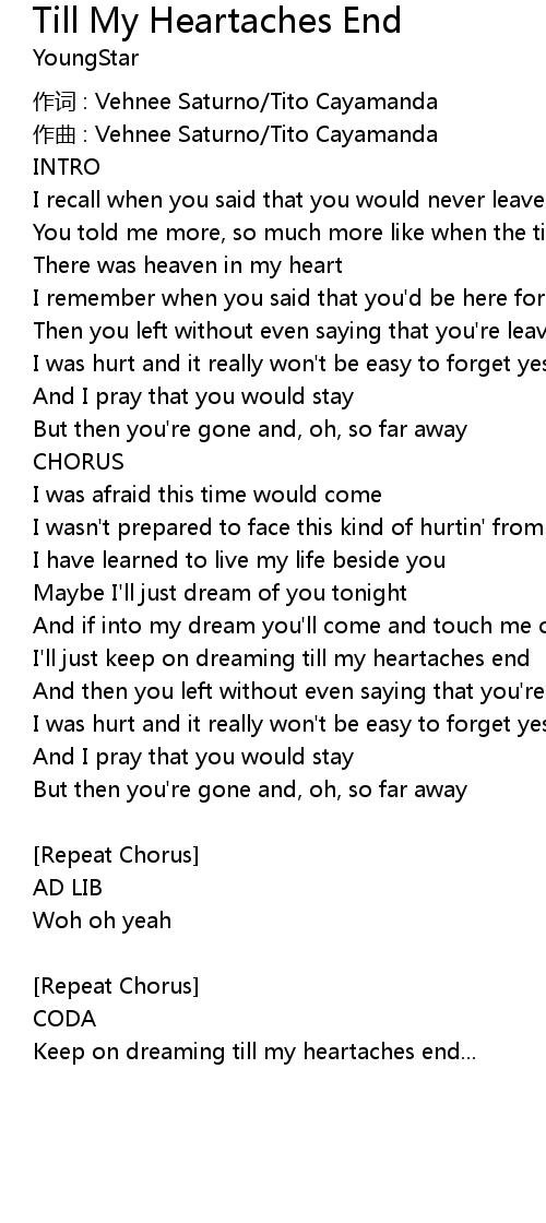 | I' ll just keep on dreaming till my heartaches end | |