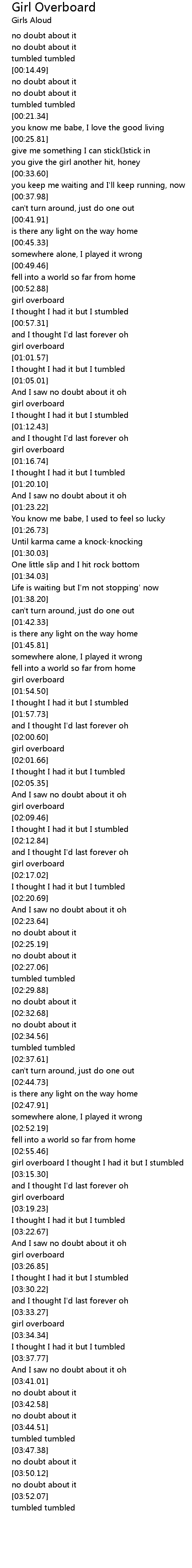 | [03:11.32] | girl overboard I thought I had it but I stumbled |