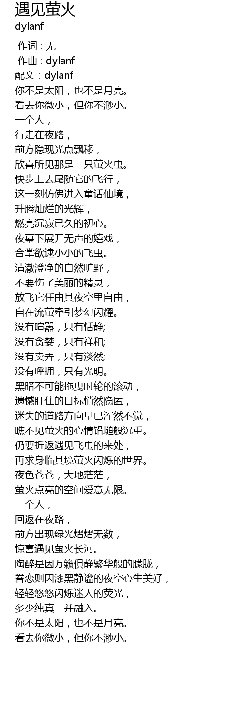 | [00:40.369] | 欣喜所见那是一只萤火虫。 |