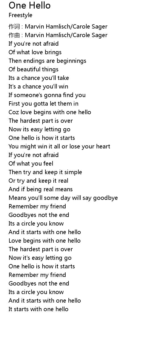 | One hello is how it starts | |