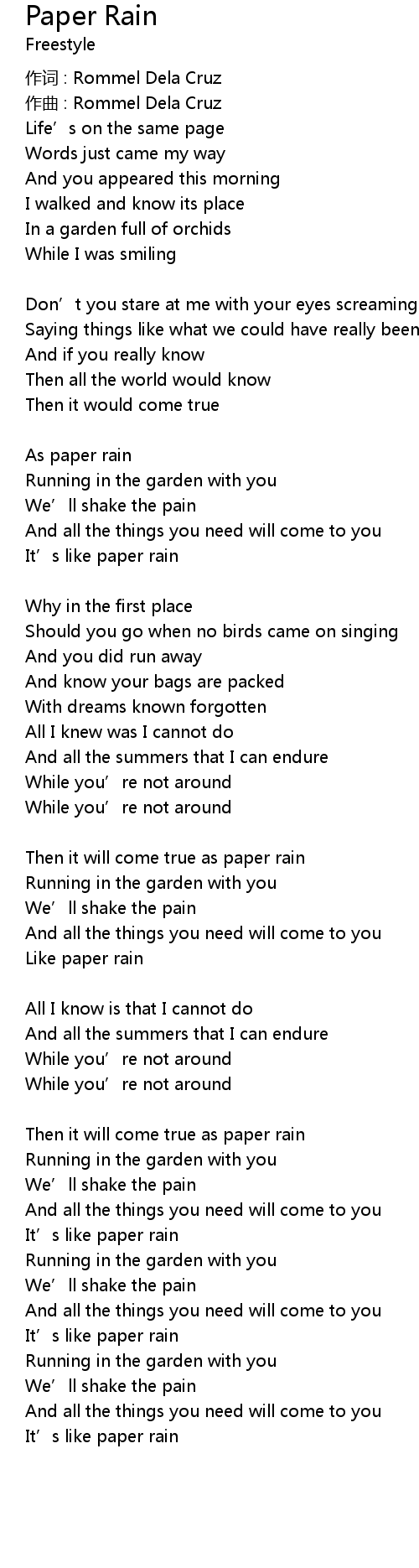 | Song | Paper Rain |