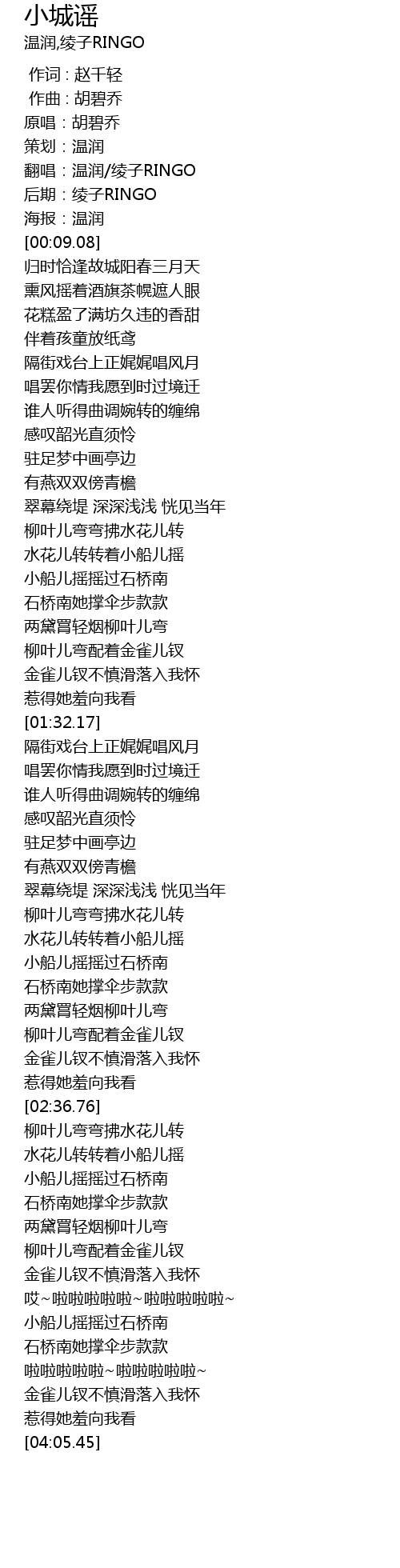 | [00:04.45] | fan chang: wen run ling zi RINGO |