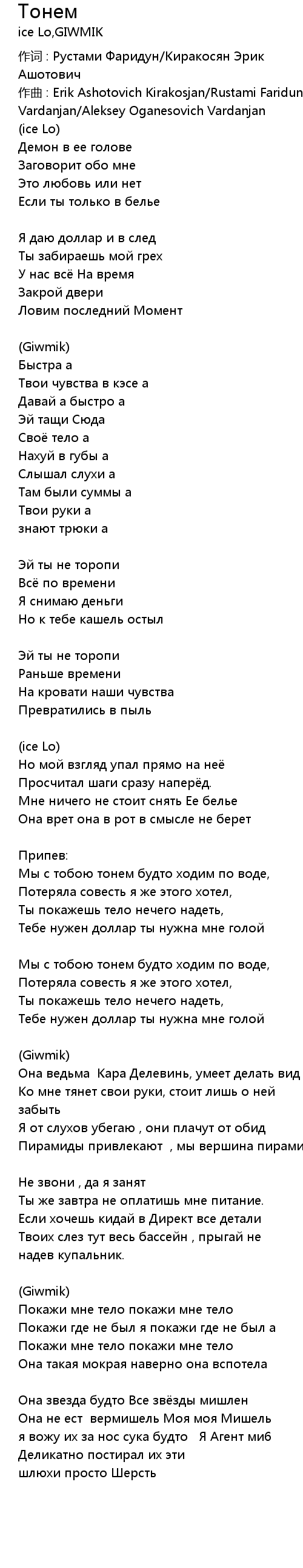 作词 : Рустами Фаридун/Киракосян Эрик Ашотович |