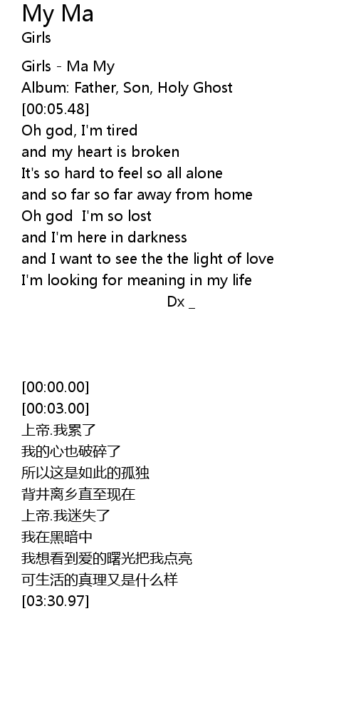 | [00:03.00] | Album: Father, Son, Holy Ghost |