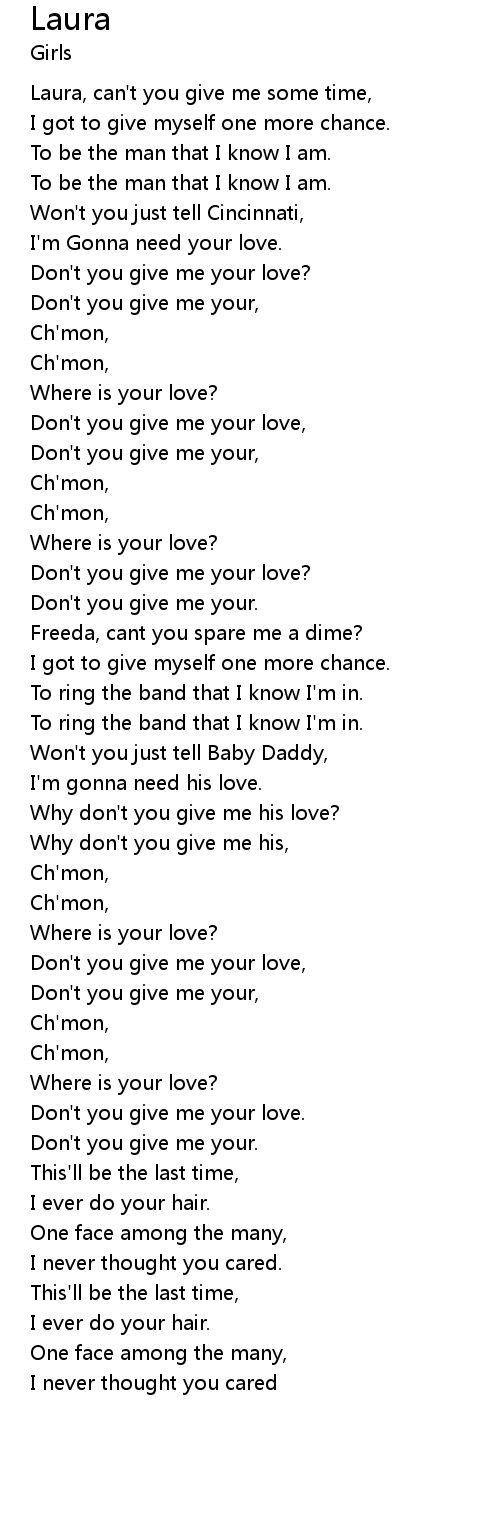 | [00:31.65] | Laura, can't you give me some time, |