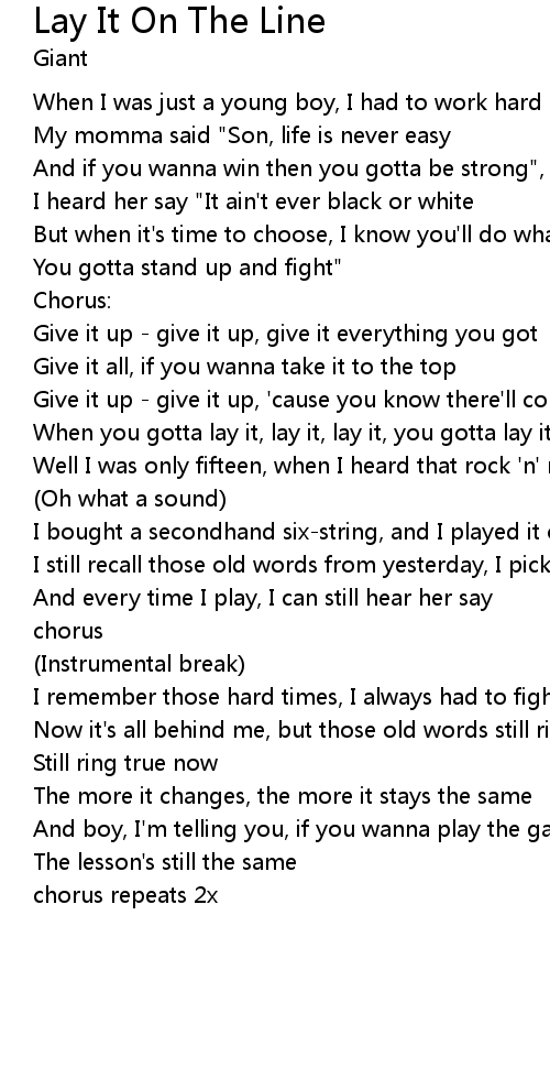 When you gotta lay it, lay it, lay it, you gotta lay it on the line |