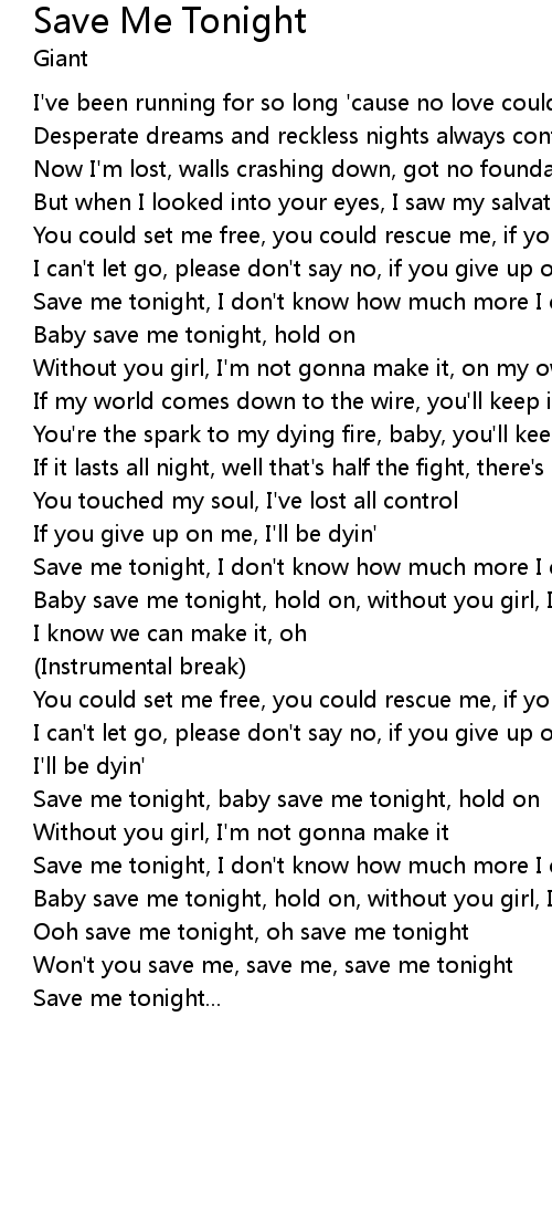 Ooh save me tonight, oh save me tonight |