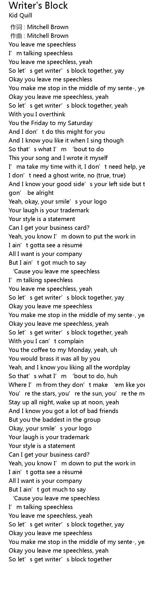 | [00:43.01] | So let’s get writer’s block together, yeah |