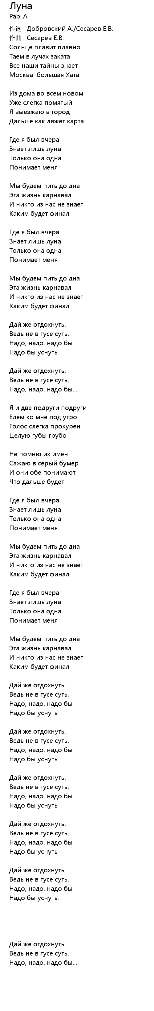 | 作词 : Добровский А./Сесарев Е.В. | |