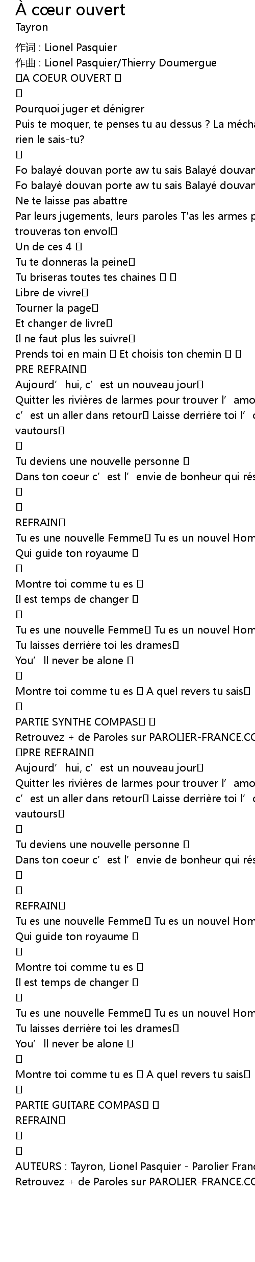| Retrouvez de Paroles sur PAROLIERFRANCE. COM | |