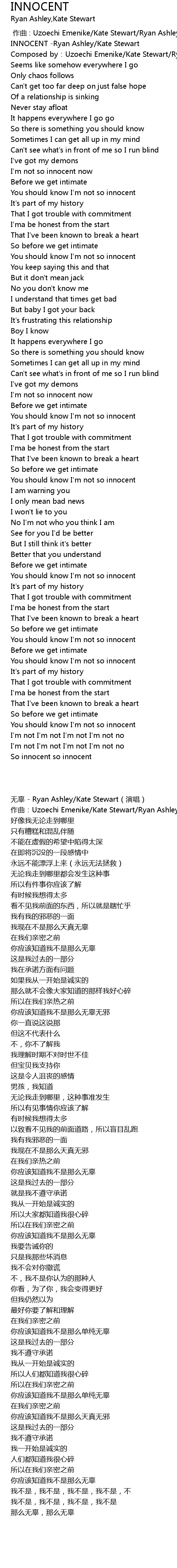 | [00:00.277] | INNOCENT -Ryan Ashley/Kate Stewart |