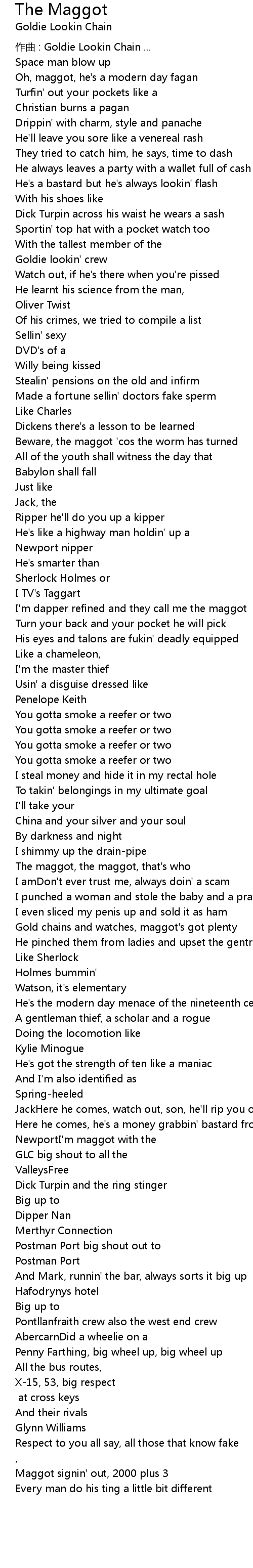 | Gold chains and watches, maggot's got plenty | |