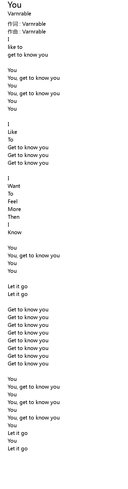 You, get to know you |
