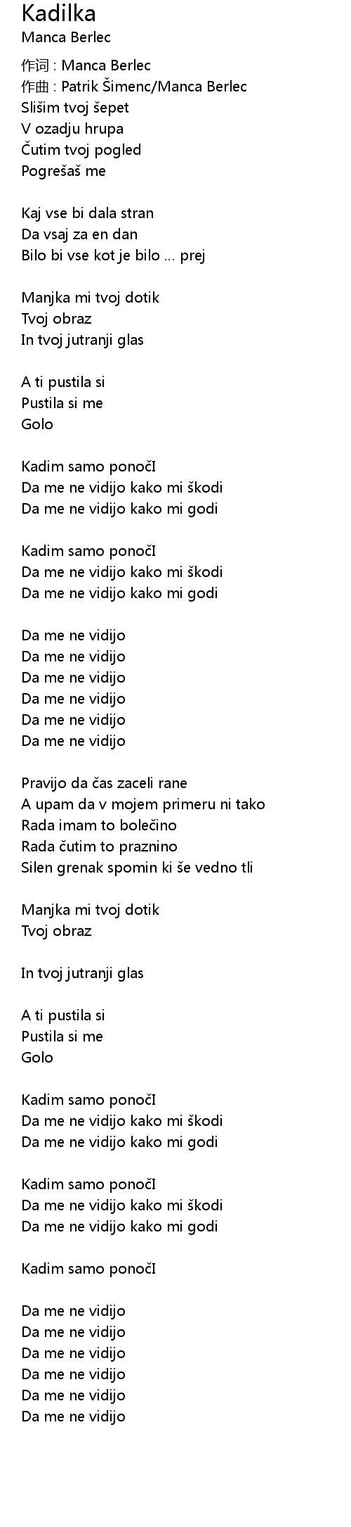 | 作词 : Manca Berlec | |