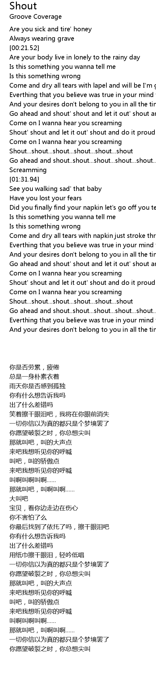 Shout' shout and let it out' shout and do it proud |