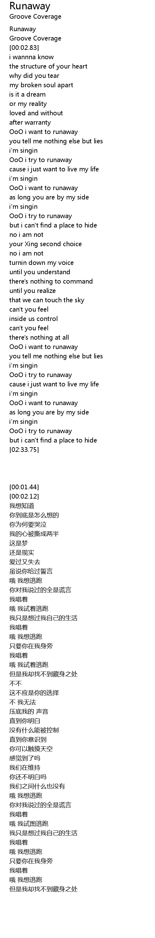 | [02:19.50] | OoO i want to runaway |