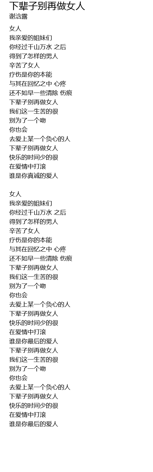| 下辈子别再做女人 | |