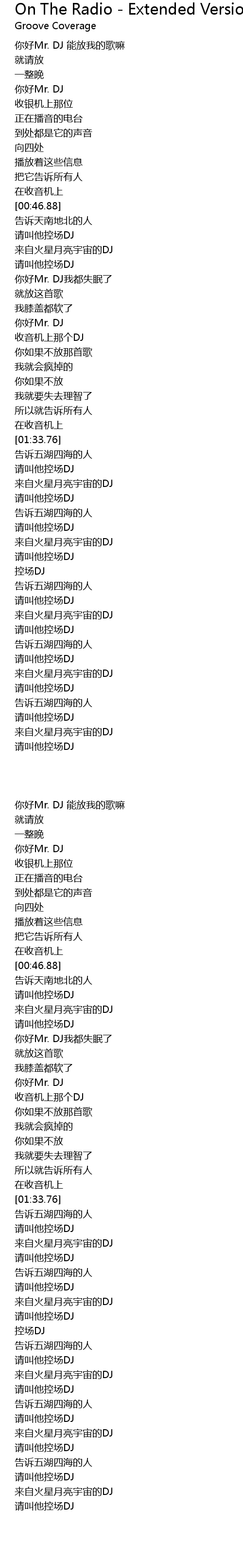 | [00:18.64] | 你好Mr. DJ 能放我的歌嘛 |