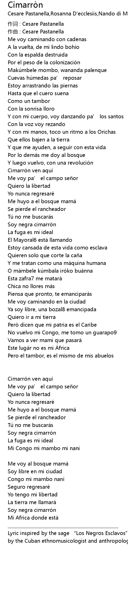 | Lyric inspired by the sage “Los Negros Esclavos” (1916) | |