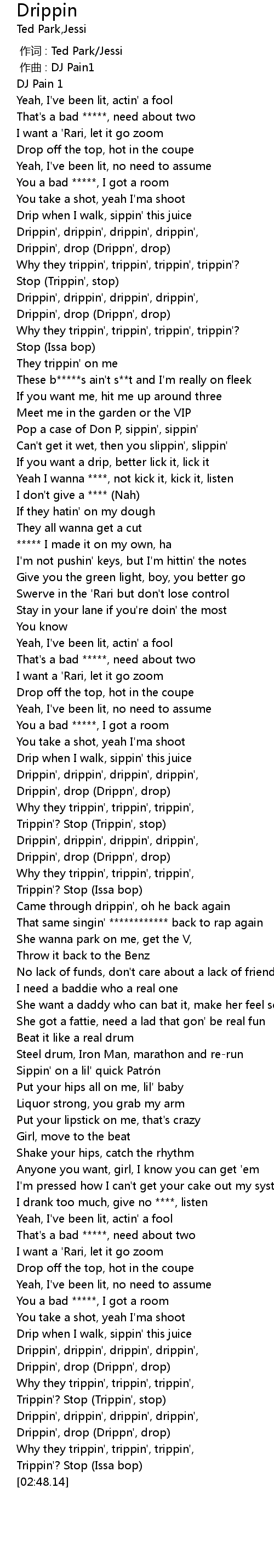 | [01:41.14] | Drippin', drop (Drippn', drop) |