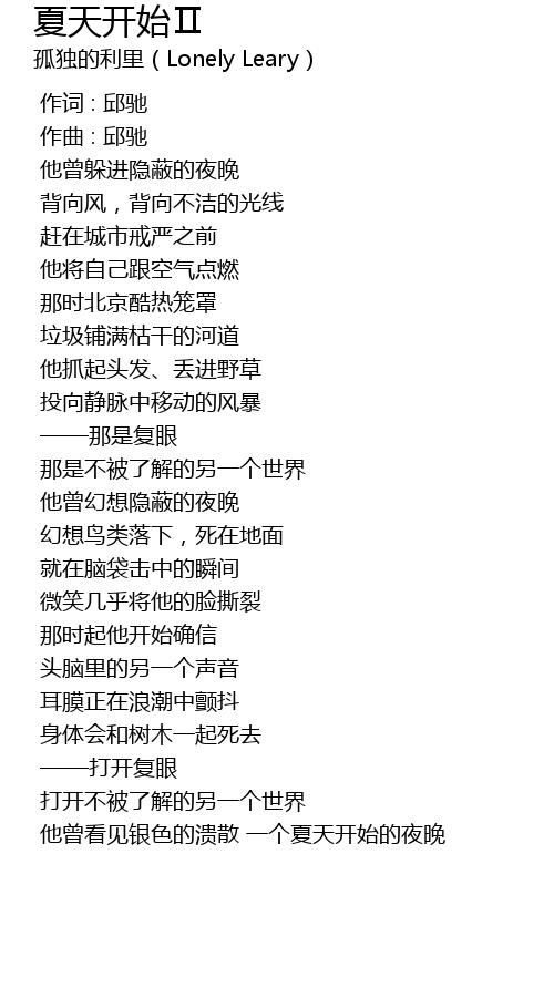| [02:46.829] | 他曾看见银色的溃散 一个夏天开始的夜晚 |
