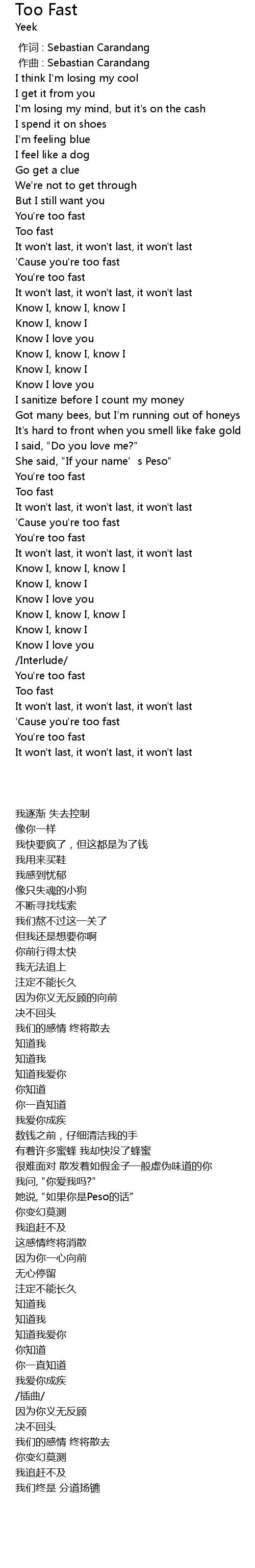 | [00:58.41] | You're too fast |
