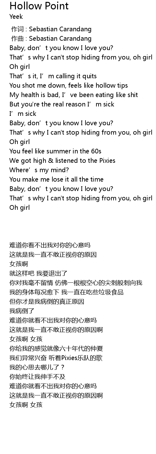 | [01:31.41] | Baby, don’t you know I love you? |