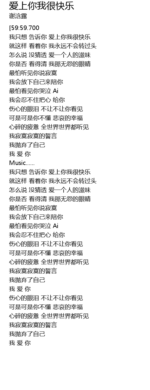 | [59:59.700] | [offset:300]我只想 告诉你 爱上你我很快乐 |