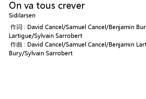| [00:00.000] | 作词 : David Cancel/Samuel Cancel/Benjamin Bury/Benjamin Lartigue/Sylvain Sarrobert |