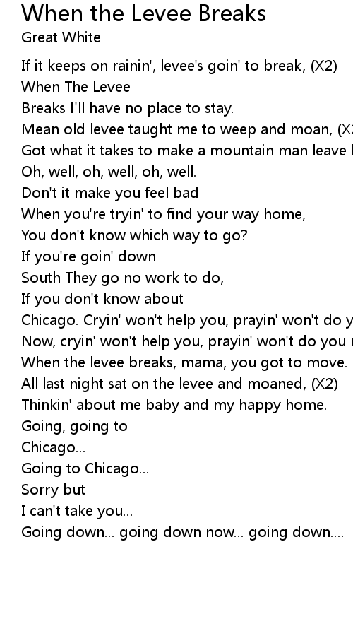 If it keeps on rainin', levee's goin' to break, (X2) |