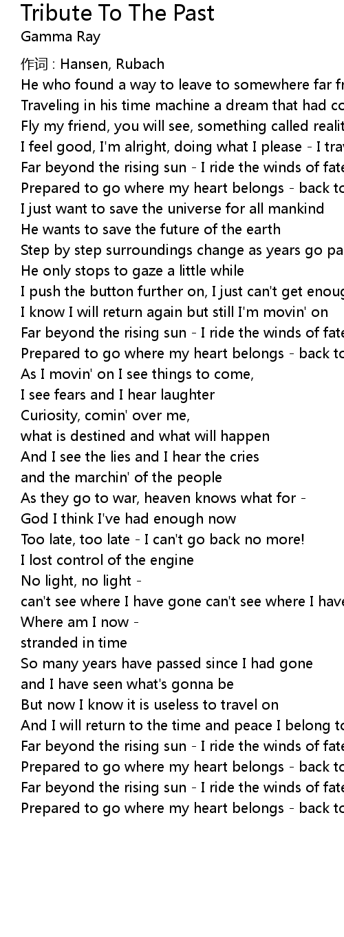| Song | Tribute To The Past |