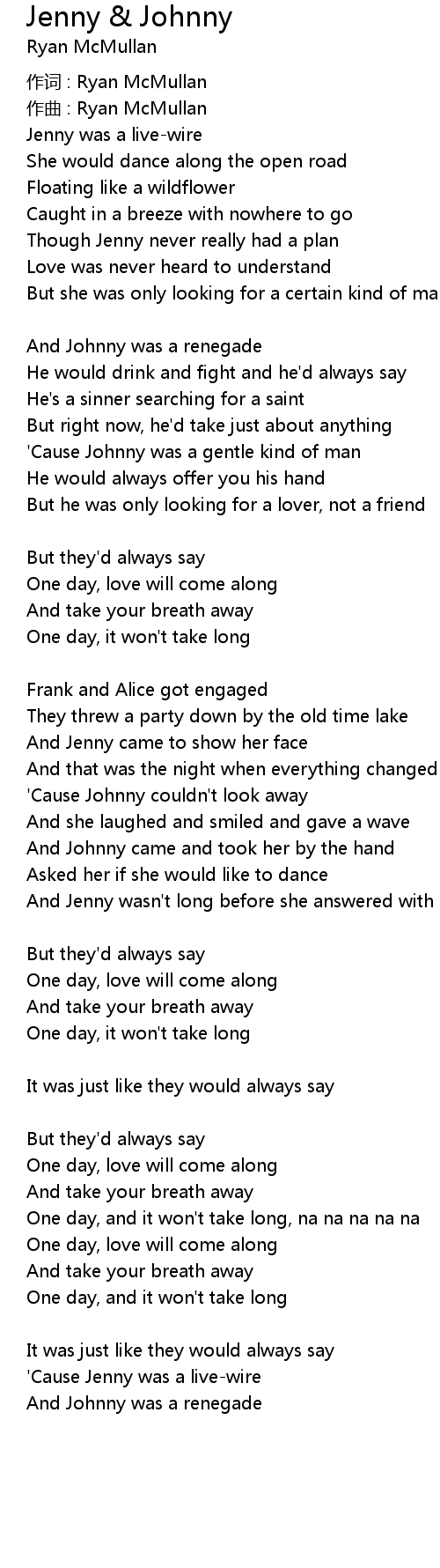 | And Jenny wasn' t long before she answered with a " yes" | |