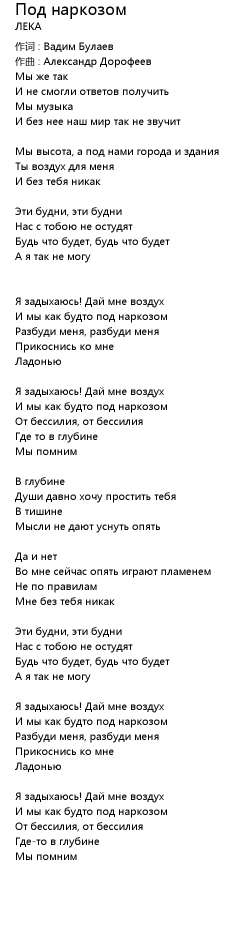 И мы как будто под наркозом |