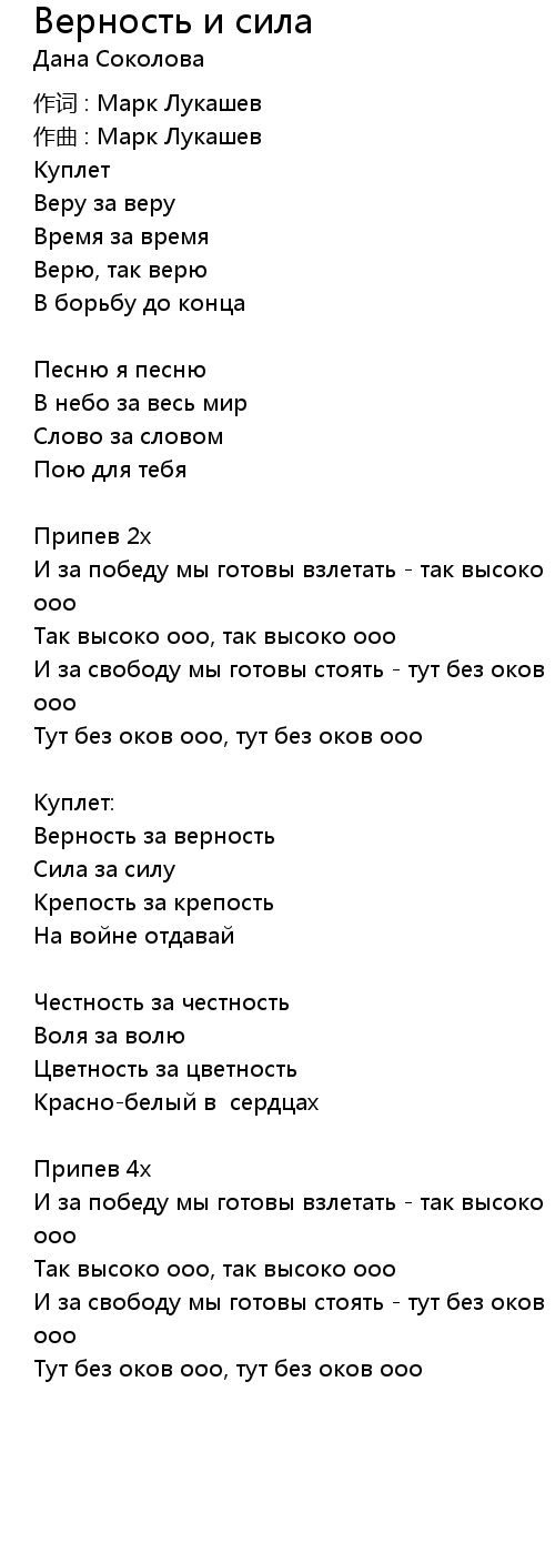 Верность и сила  Lyrics