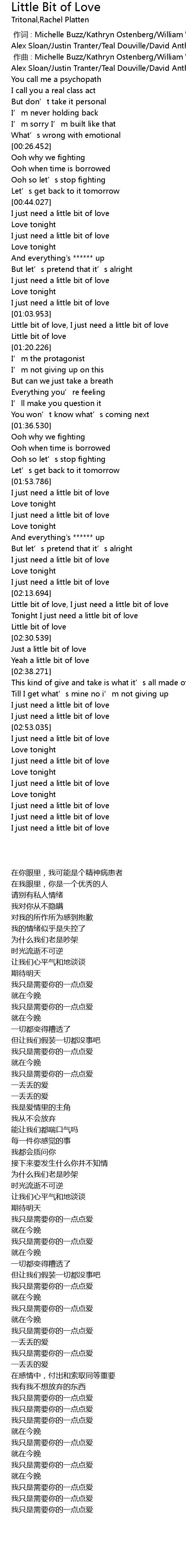 | [02:59.500] | I just need a little bit of love |