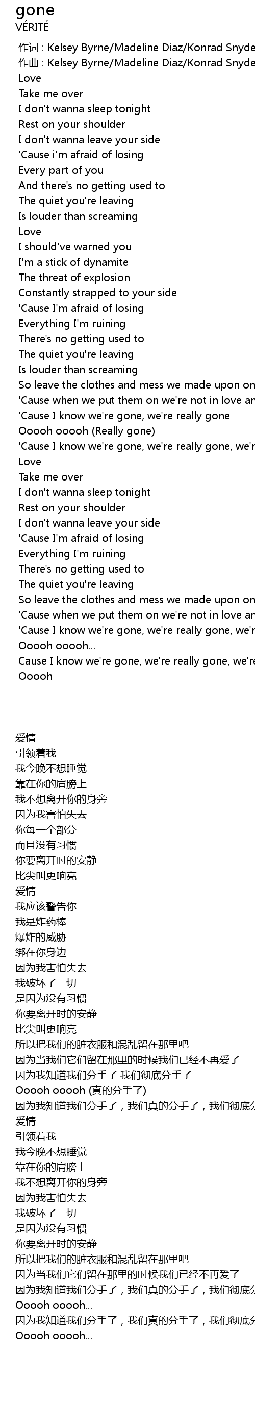 | [01:42.651] | ' Cause I know we' re gone, we' re really gone |