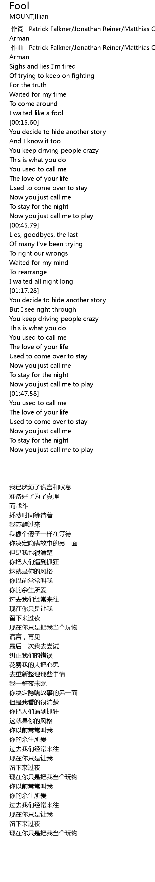 | [00:13.65] | I waited like a fool |