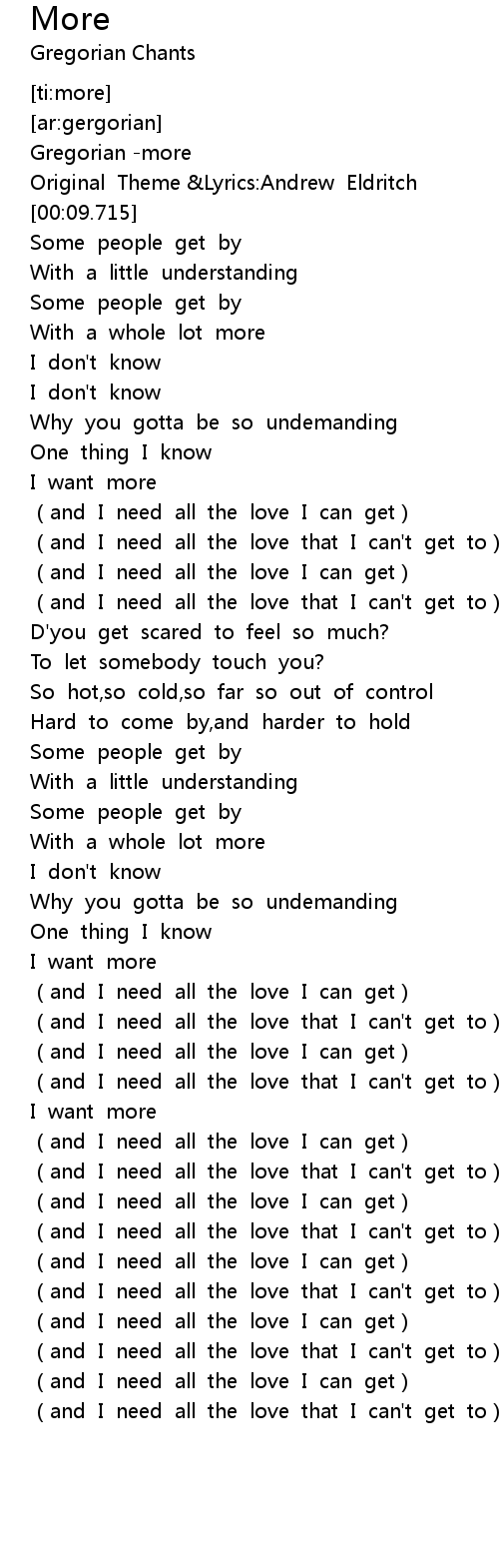 | [04:18.487] | (and I need all the love that I can't get to) |