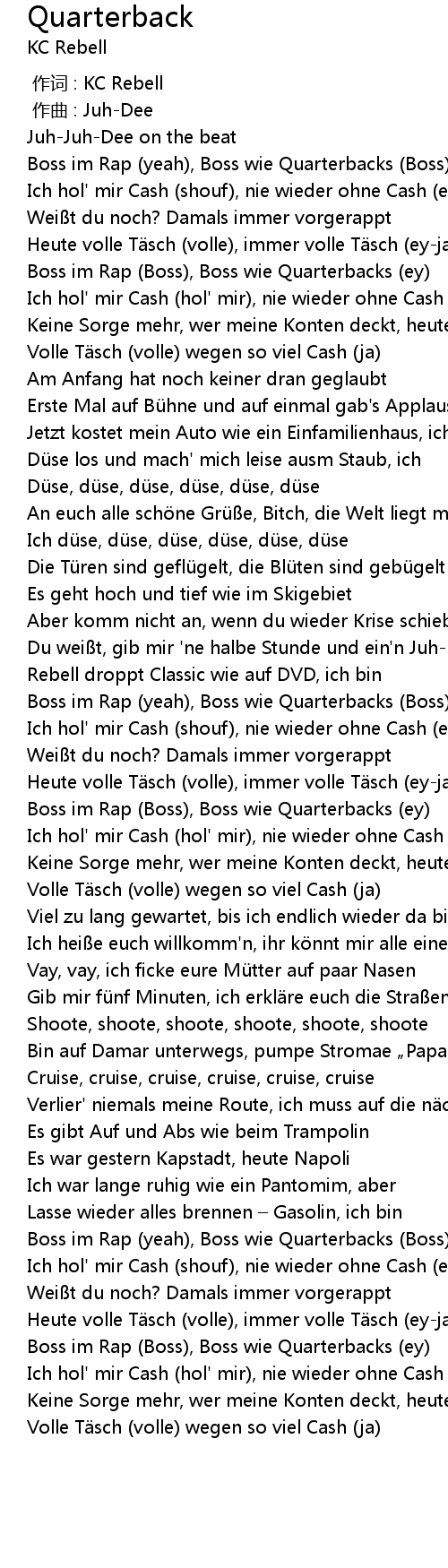 | [00:11.847] | Boss im Rap (yeah), Boss wie Quarterbacks (Boss) |
