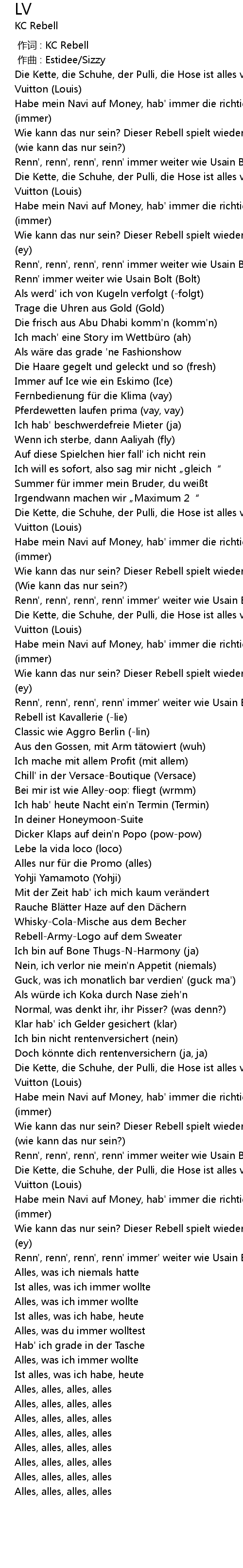| [00:00.000] | 作词 : KC Rebell |