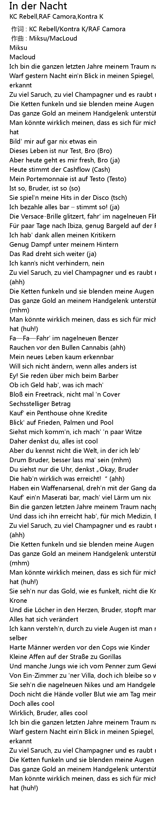 | [00:00.000] | 作词 : KC Rebell/Kontra K/RAF Camora |