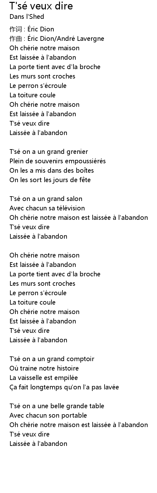| Oh ché rie notre maison est laissé e à l' abandon | |