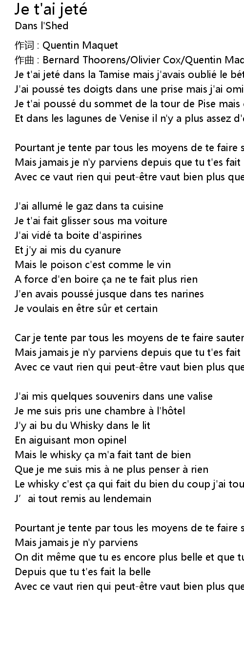 | Song | Je t'ai jeté |