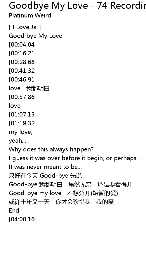 | [02:31.23][00:57.86] | sui ran wu nai hai shi yao kan de kai Goodbye my love, my love |